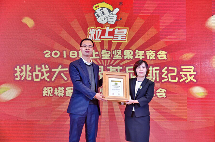 2018年1月27日,由广州粒上皇食品有限公司主办的规模最大的坚果主题年会 —“2018粒上皇坚果年夜会”在广州市越秀区中华广场举行,现场6680人参与坚果品尝、坚果互动游戏等年夜会活动。