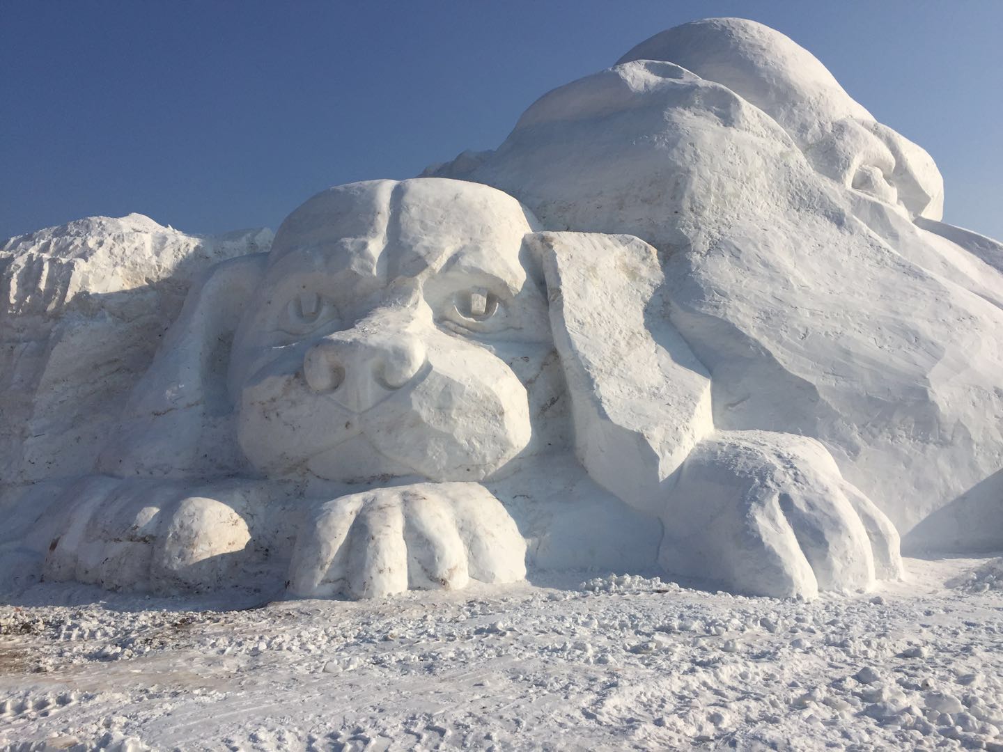 最大的雪雕狗 —“金狗贺春”