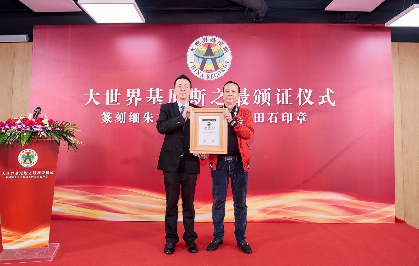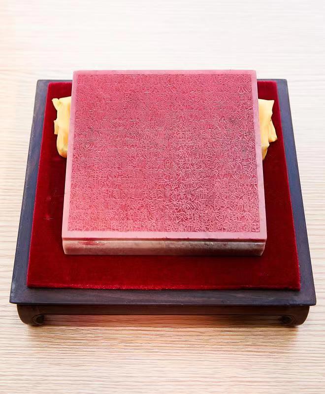 该印章取材青田石,印面由董思永(广东·汕头)于2020年8月至11月以《大悲咒》为题材手工篆刻而成,印面共416字,篆刻面积169平方厘米。