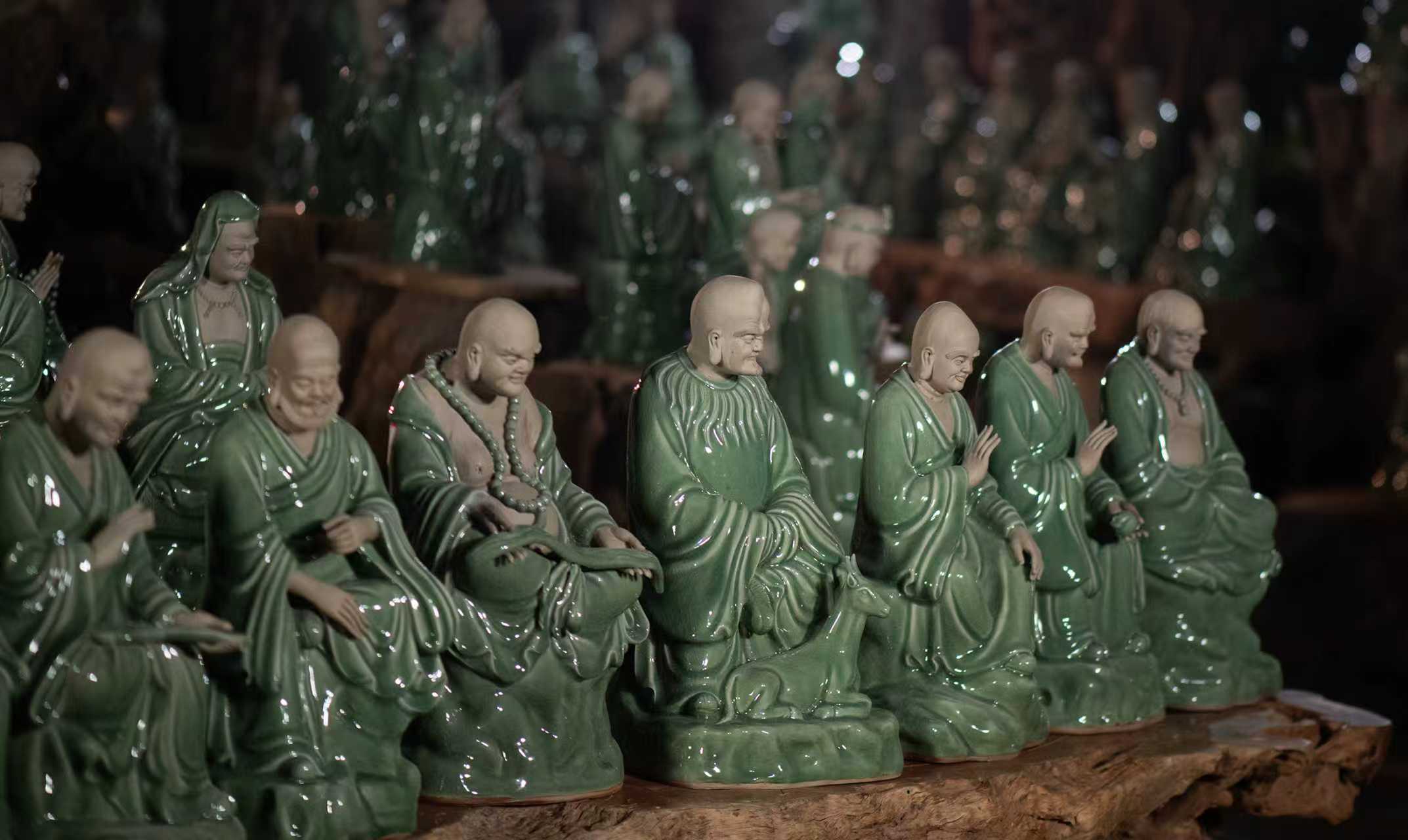 陈万龙(福建·莆田)于2021年05月至2024年11月制作青瓷罗汉雕像,共计500尊。
