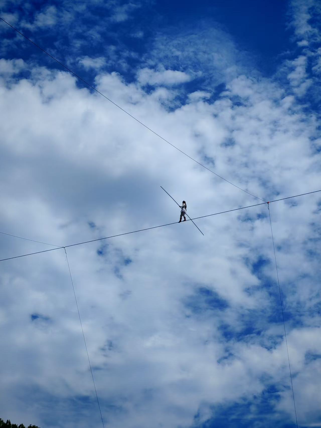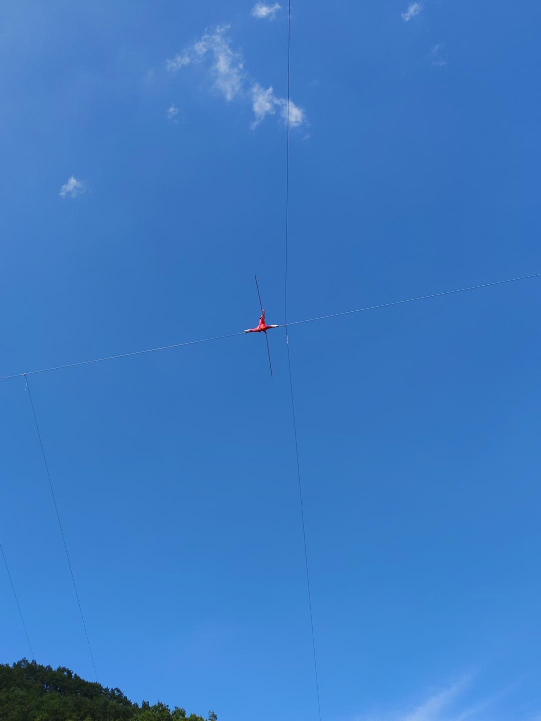 洛阳市栾川竹海野生动物园内高89米的钢丝上表演达瓦孜,累计行走206小时19分钟。