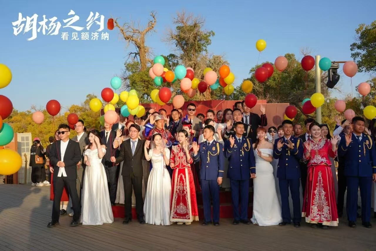 数量:101对2025年10月2日由额济纳旗文化旅游广电局、内蒙古广电传媒有限责任公司组织的“千年胡杨 百年姻缘集体婚礼大型主题活动”在内蒙古自治区阿拉善盟额济纳胡杨林旅游区举行,现场101对新人参与此次活动。